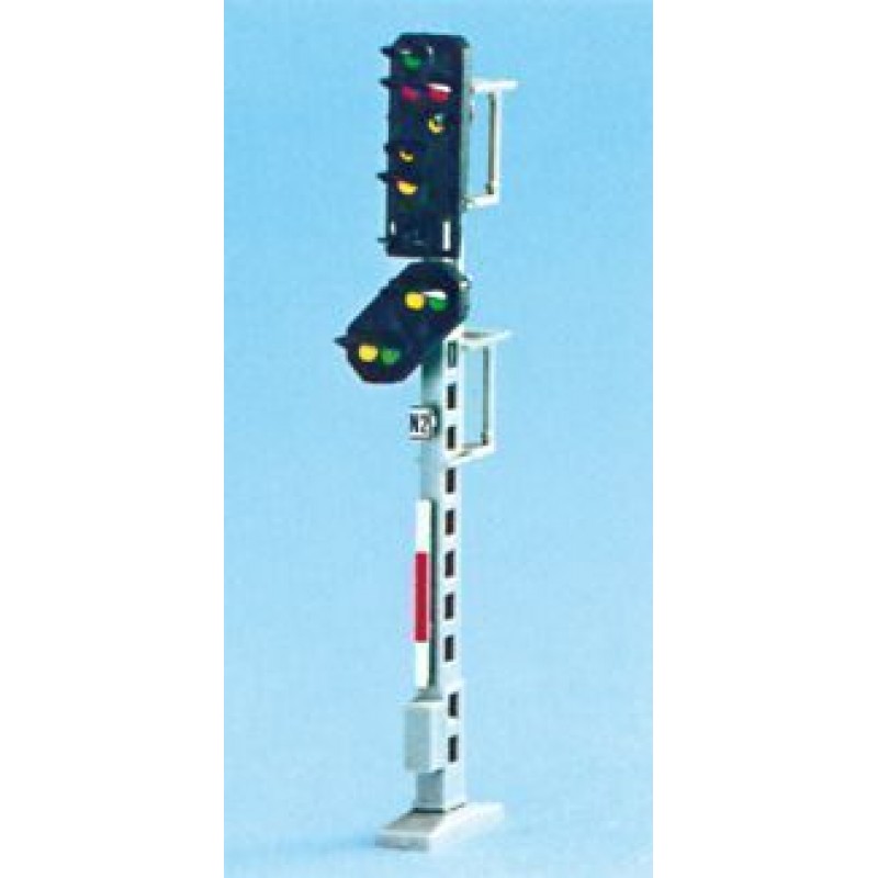 Schneider-Feinwerktechnik - 2106 Ausfahr-Hauptsignal mit Vorsignal DB. 10 LED Höhe 77 mm dazu Signalschalter 2014 und 2012 Das Lichtsignal kann mit 14 - 16 V Gleich- oder Wechselspannung betrieben werden. Abbildungen können abweichen. Deko und Zubehör auf Fotos nicht enthalten. Dieser Artikel ist für Personen ab 15 Jahre geeignet und kein Kinderspielzeug. Lieferdauer: 10-14 Tage